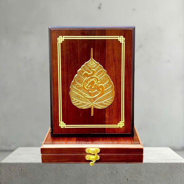 Không gian bài trí: La bồ đề dát vàng của HTgold kích thước phủ bì 17 x 22cm, gắn trên nền khung gỗ. Sắc vàng sang trọng từ chất liệu kim loại đồng dát vàng thể hiện sự tôn quý, phù hợp trang trí nhiều không gian như bàn làm việc, trung bày tại phòng khách...Sang trọng khi làm quà biếu, quà tặng, trang trọng và ý nghĩa