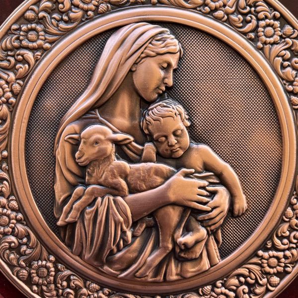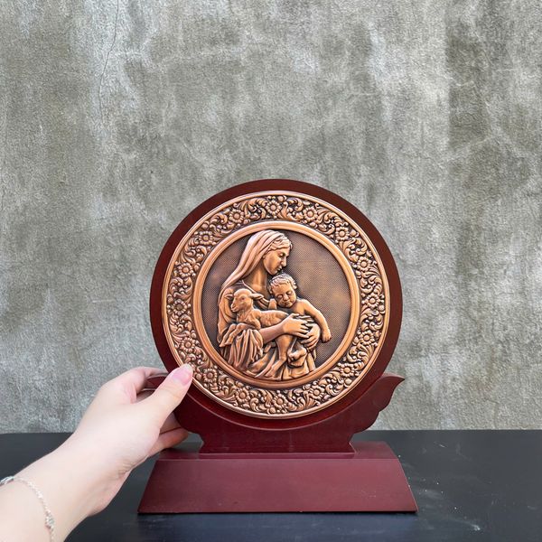 QUÀ TẶNG CÔNG GIÁO - TRANH ĐỒNG "ĐỨC MẸ MARIA BẾ CHÚA GIÊSU" (20cm x 25cm)