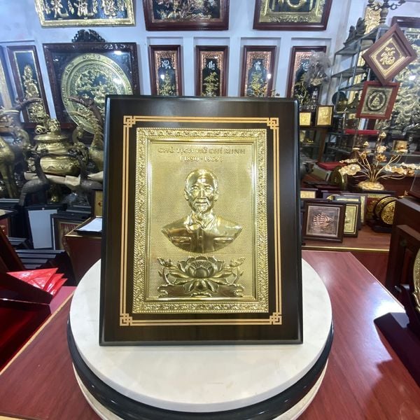 Tranh chân dung Bác Hồ bằng đồng kích thước 20cm x 25cm mô phỏng chân thực hình ảnh Bác Hồ với khuôn mặt tươi sáng rạng ngời. Sản phẩm tranh đồng của HTgold được chạm tay thủ công tinh xảo, sắc nét và rất độc đáo. Tranh đồng chân dung Bác Hồ là quà tặng lưu niệm mang dấu ấn dân tộc sâu sắc có thể trưng bày trong gia đình, trong phòng làm việc nhằm tỏ lòng thành kính đối với vị lãnh tụ vĩ đại của đất nước, thường được đặt ở những nơi trang trọng thể hiện sự biết ơn, tưởng nhớ tới Bác. Đặc biệt là các sự kiện chính trị, ngoại giao quan trọng. Đây cũng là cách để con cháu ngàn đời thể hiện lòng biết ơn sâu sắc, sự tưởng nhớ và kính trọng đối với vị lãnh tụ vĩ đại của dân tộc Việt Nam ta.