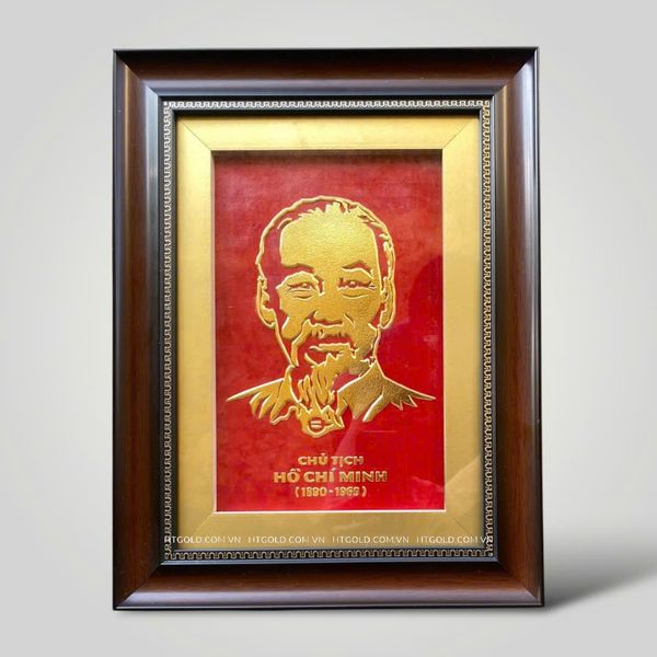 Tranh chân dung Bác Hồ bằng đồng, bề mặt tranh được dát vàng, kích thước 32cm x 42cm mô phỏng chân thực hình ảnh Bác Hồ với khuôn mặt tươi sáng rạng ngời. Sản phẩm tranh đồng của HTgold được chạm tay thủ công tinh xảo, sắc nét và rất độc đáo. Tranh đồng chân dung Bác Hồ là quà tặng lưu niệm mang dấu ấn dân tộc sâu sắc có thể trưng bày trong gia đình, trong phòng làm việc nhằm tỏ lòng thành kính đối với vị lãnh tụ vĩ đại của đất nước, thường được đặt ở những nơi trang trọng thể hiện sự biết ơn, tưởng nhớ tới Bác. Đặc biệt là các sự kiện chính trị, ngoại giao quan trọng. Đây cũng là cách để con cháu ngàn đời thể hiện lòng biết ơn sâu sắc, sự tưởng nhớ và kính trọng đối với vị lãnh tụ vĩ đại của dân tộc Việt Nam ta.