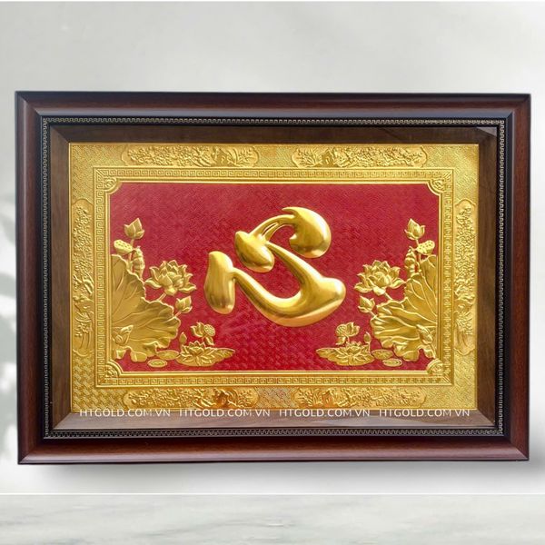 Tranh chữ Tâm (Hán) bằng đồng, dát vàng, kích thước cao 50cm, ngang 70cm thuộc dòng quà tặng cao cấp, được thiết kế rất đẹp mắt, rất thích hợp để trang trí phòng khách, phòng làm việc giúp không gian thêm sang trọng và đẳng cấp.