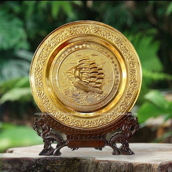 Tranh Thuận buồm xuôi gió, đường kính 35cm, bằng đồng mạ vàng 24k - tuyệt tác thủ công tinh xảo, kết hợp hài hoà giữa nghệ thuật chạm khắc truyền thống và giá trị phong thuỷ sâu sắc.